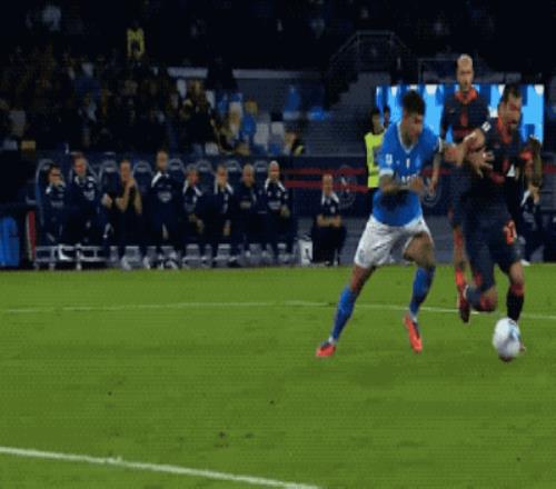 第66分钟,那不勒斯打出行云流水的配合,连续一脚传球过后,安古伊萨利用节奏变化晃开防守,斜射破门。