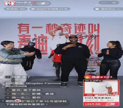 退役球星麦迪亮相“NBA甄选”带货