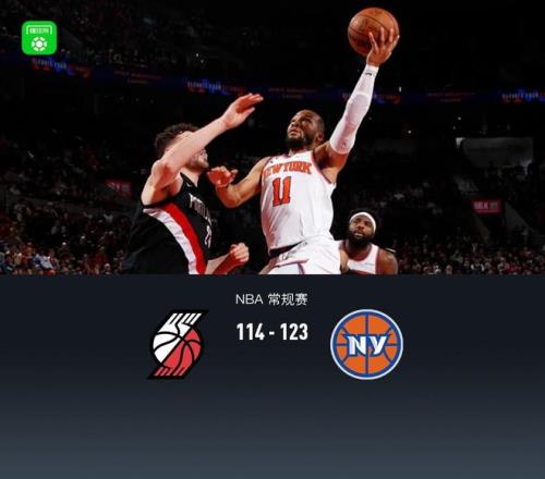 北京时间1月12日NBA 常规赛,波特兰开拓者对阵纽约尼克斯。本场开拓者霍勒迪复出,杨瀚森并没有得到出场机会。上半场双方紧咬比分,半场开拓者60-65尼克斯,下半场尼克斯多次将分差拉大至两位数,开拓者追近比分,但比赛最后阶段尼克斯一波三分雨再度拉开分差,阿夫迪亚伤退,最终尼克斯123-114终结开拓者5连胜。