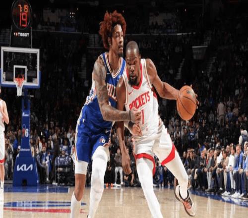 北京时间1月23日,NBA常规赛,76人对阵火箭的比赛进入加时赛。比赛末节最后时刻,双方115-115战平,76人后卫马克西持球突破冲进内线完成上篮,在篮球触碰到篮板后,火箭前锋杜兰特再次